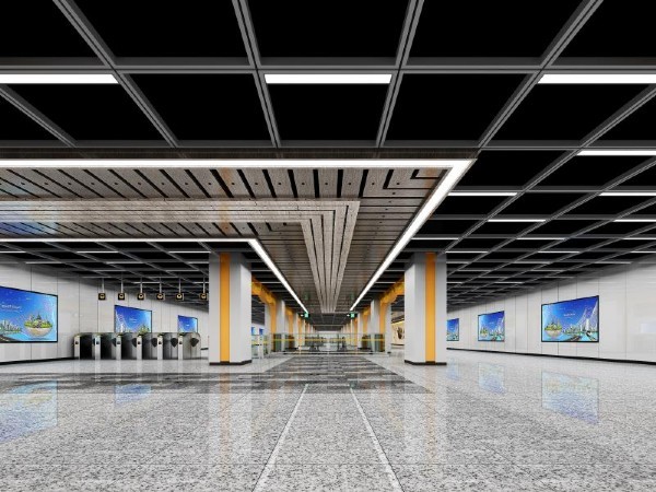 線路全長43.396km,全線共設(shè)車站29座,全部為地下車站,最大站間距3.295km,最小站間距0.774km,平均站間距1.54km。